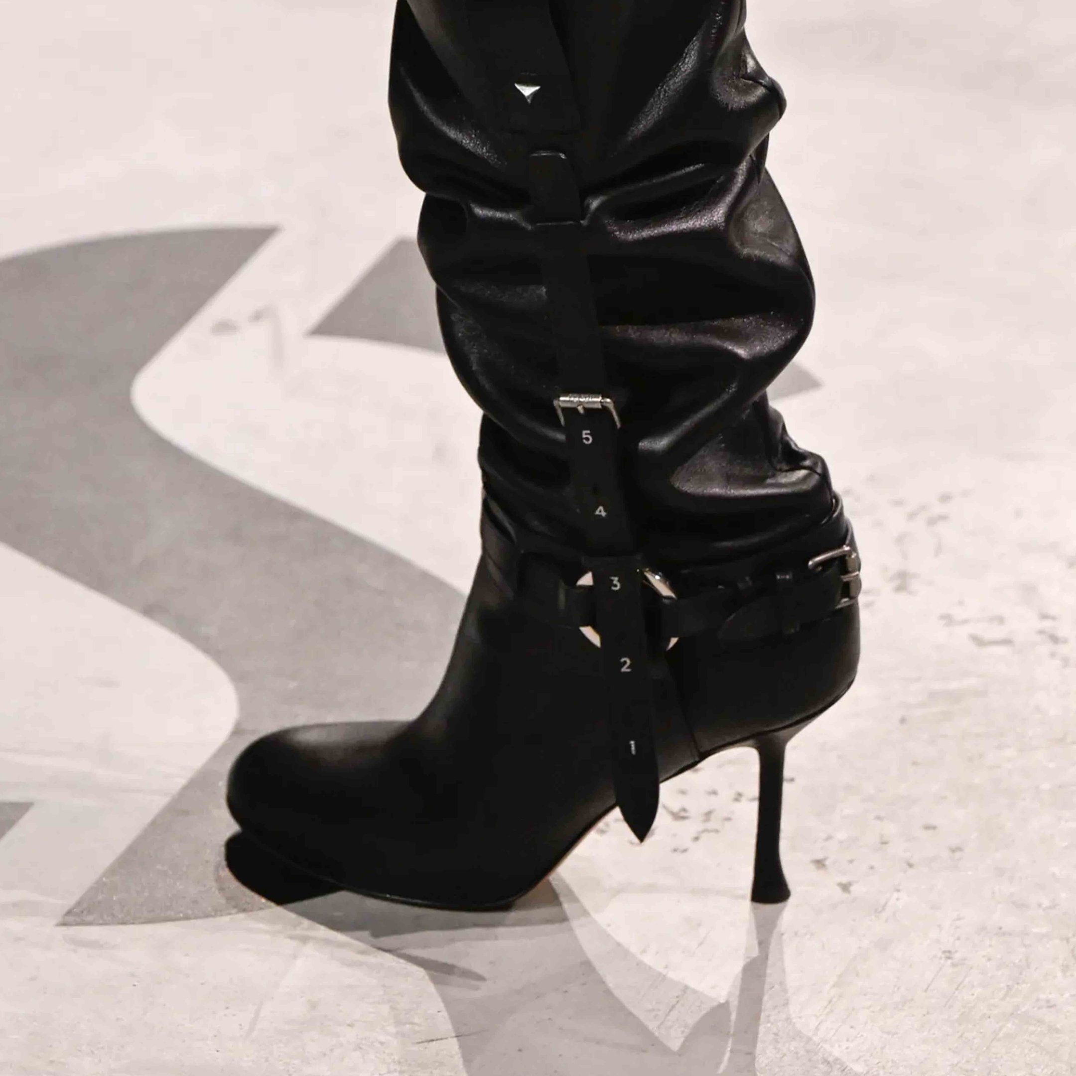 Transparência com elegância,recortes estratégicos e silhueta que revela sem exagero. Forte presença nas passarelas com retorno do sexy refinado. Quando falamos de sapatos vemos essa tendência nas botas retas que criam a estrutura clássica.