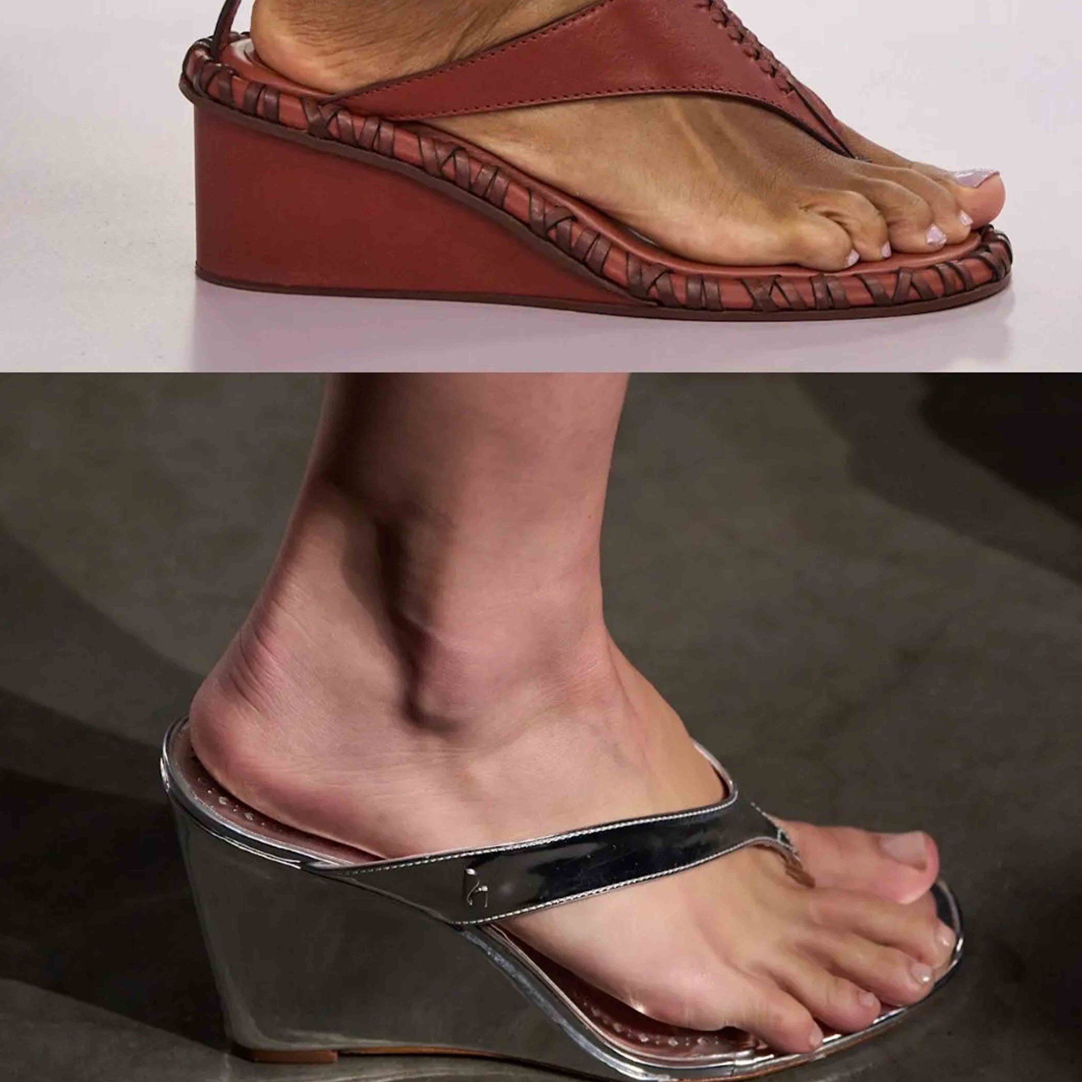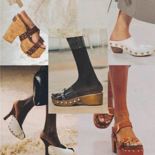 Vemos nessa última temporada a evolução do Boêmio que emerge novamente com códigos como fluidez, babados, camadas, floral e romantismo. Quando olhamos para os pés, vemos a estética rústica da madeira em flatforms, clogs e sandálias.