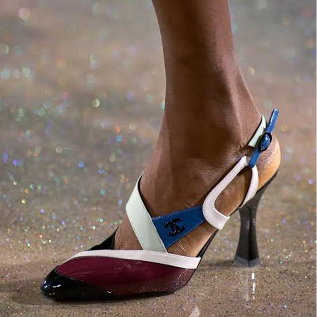 Roxo, vermelho, azul.Color blocking e combinações ousadas. Cores vibrantes dominaram coleções recentes e o mesmo color blocking transpassou aos sapatos como ponto de cor e maximalismo.
