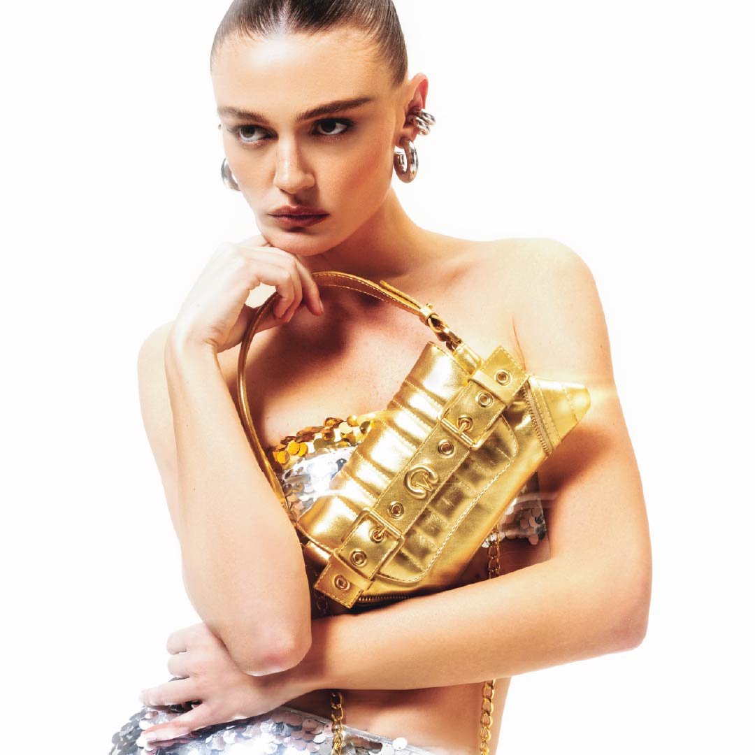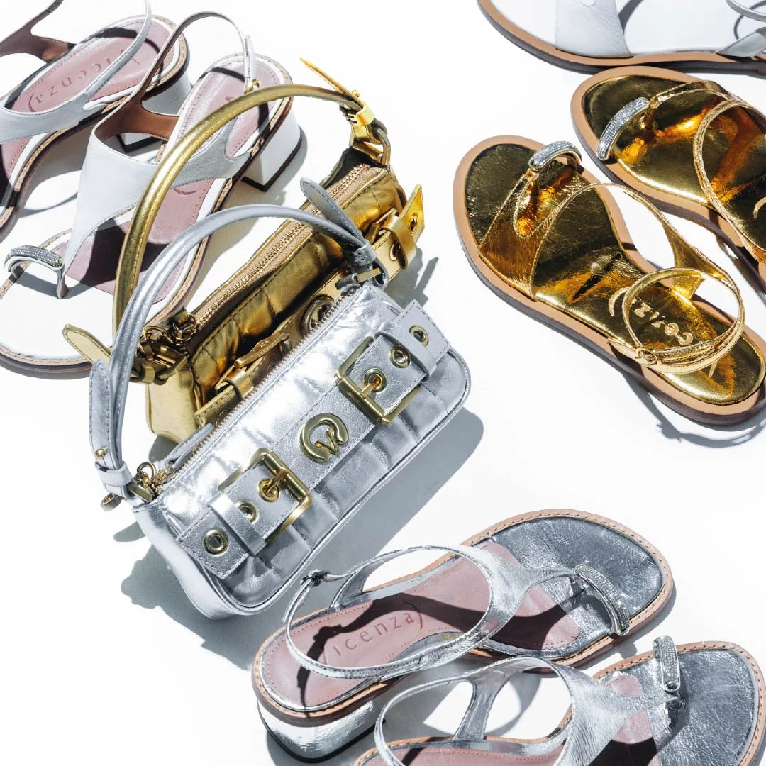 A prata e o dourado deixam de ser extravagância e passam a funcionar como verdadeiros “tons universais”. A Vicenza trabalha essa dualidade com elegância: aplicações reflexivas, superfícies espelhadas nas sandálias Stellar, bags Lien metalizadas. O brilho vira ponto de partida, não como adorno final.